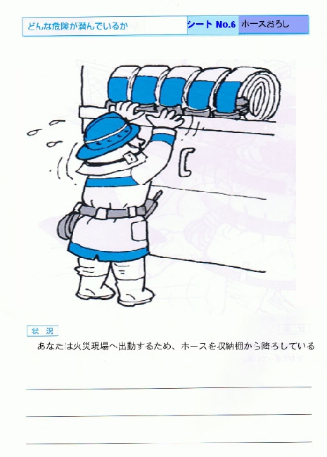 S-KYTは、日ごろの定例訓練や機械器具の点検など、消防団員の集合機会をとらえて継続的に実施する必要があります。宇部市消防団では平成23年に幹部団員を対象に研修会を実施しました。その時のテキストの演習シートを掲載、ダウンロード出来る環境を整えましたので。ご活用下さい。