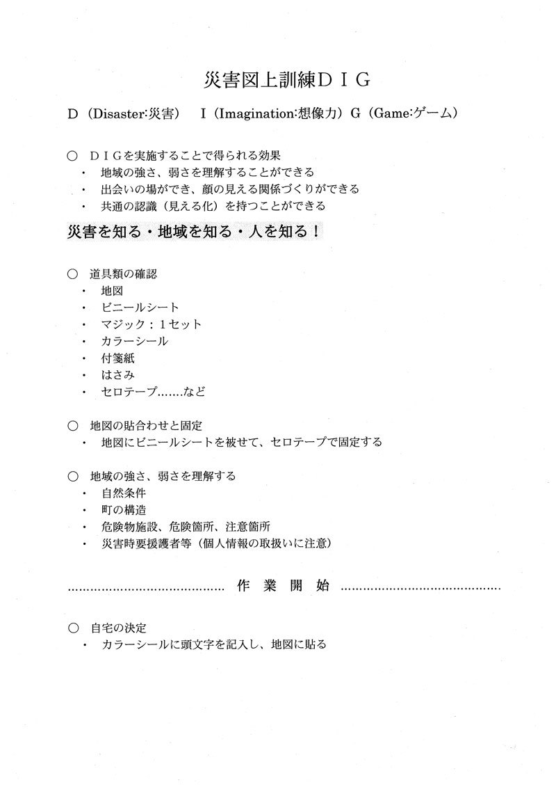 DIG(ディグ)は、参加者が地図を使って防災対策を検討する訓練です。